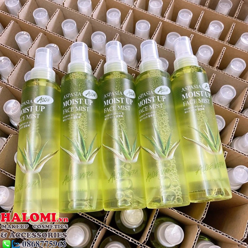 Xịt khoáng lô hội Aspasia Moist Up Face Mist Hàn Quốc 150ml khoáng nha đam dưỡng trắng da chính hãng HALOMI
